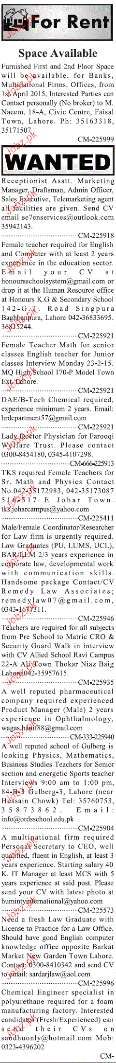 Receptionist, Teachers, Marketing Staff Job Opportunity