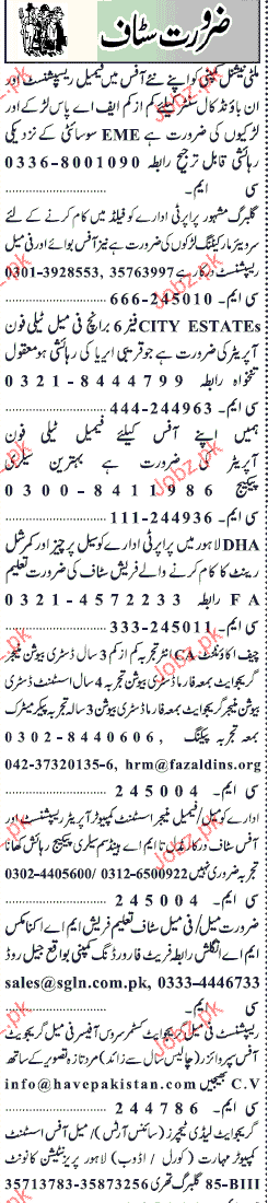 Latest Private Company Telephone Operator Posts Lahore 2025