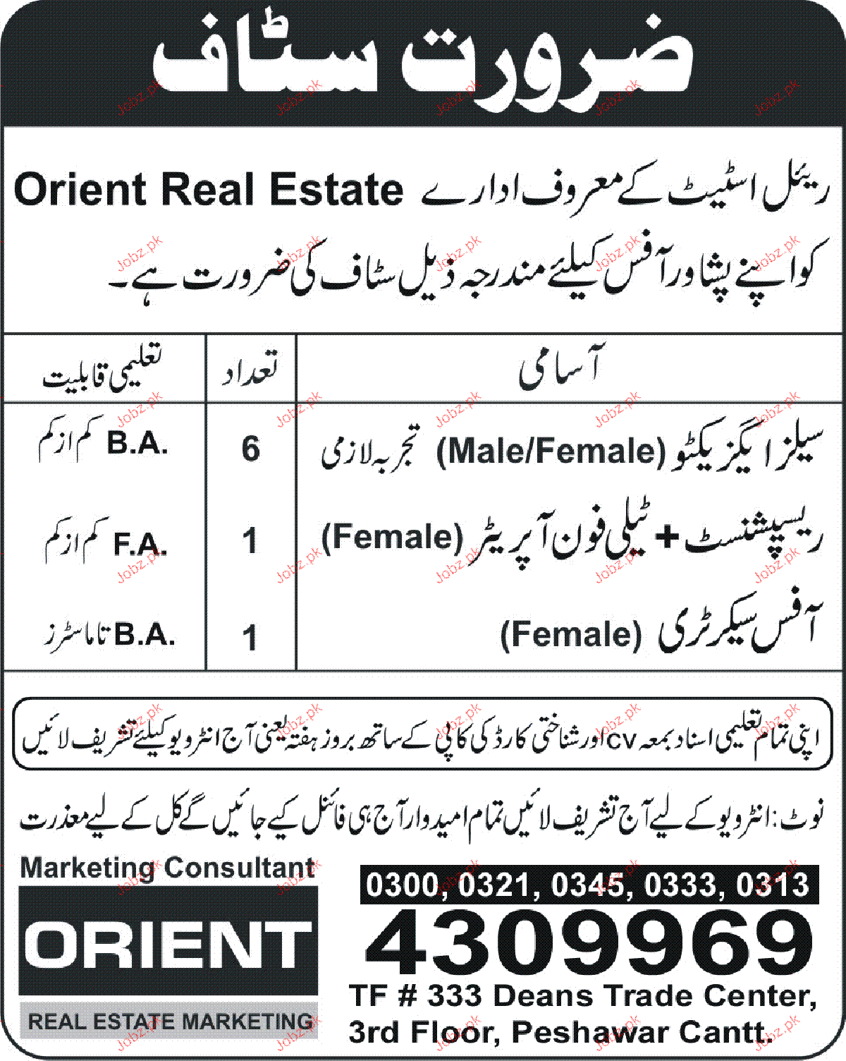 Apply as per details in job advertisement. Login to view further details of how to apply via https://www.jobz.pk online.