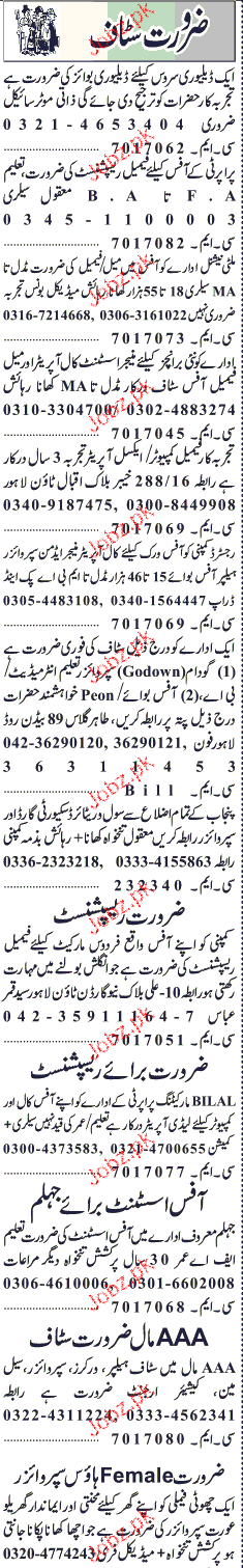 Receptionists, Delivery Boys, Call Operators Job Opportunity