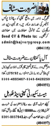Vacant posts including manager, security guard, recovery officer, female manager, computer call operator, accountant, security staff, clerk and office boy are announced in Private Company Gulberg Lahore, lahore Punjab Pakistan as per 15 May 2025 advertisement in daily Nawaiwaqt Newspaper. Persons with BA, I.com, Middle, Intermediate, Matric and Bachelor etc. education can apply.
