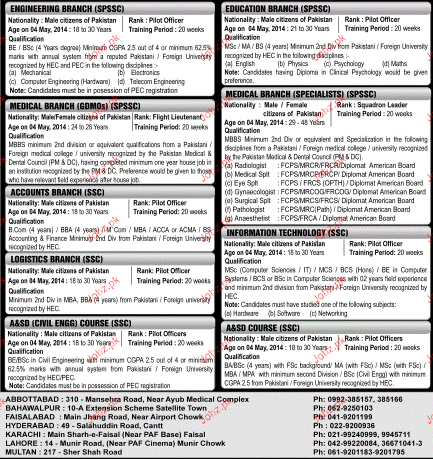 Recruitment as Officers Job in Pakistan Air Force