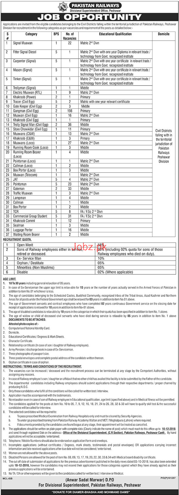 Latest Pakistan Railways Engineering Posts Peshawar 2025