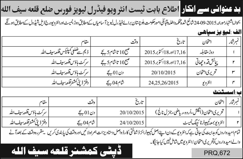 Latest Government Department Security Posts Qila Saifullah 2025