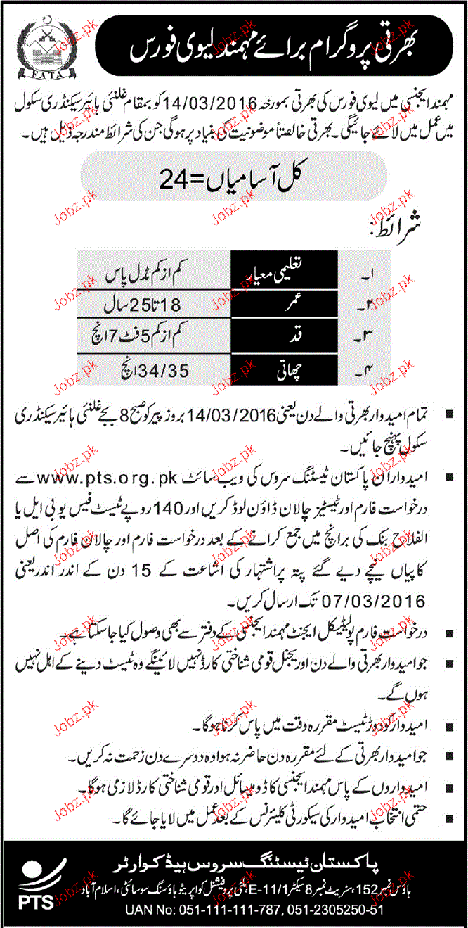 Apply as per details in job advertisement. Login to view further details of how to apply via https://www.jobz.pk online.