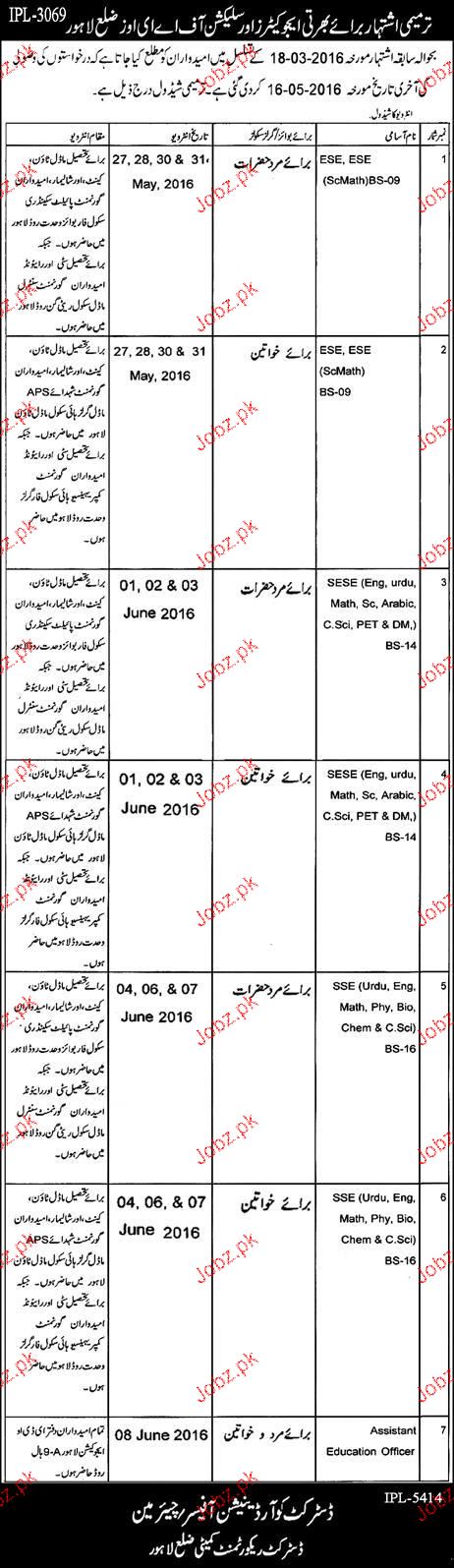 Latest Government Teaching Posts Lahore 2025