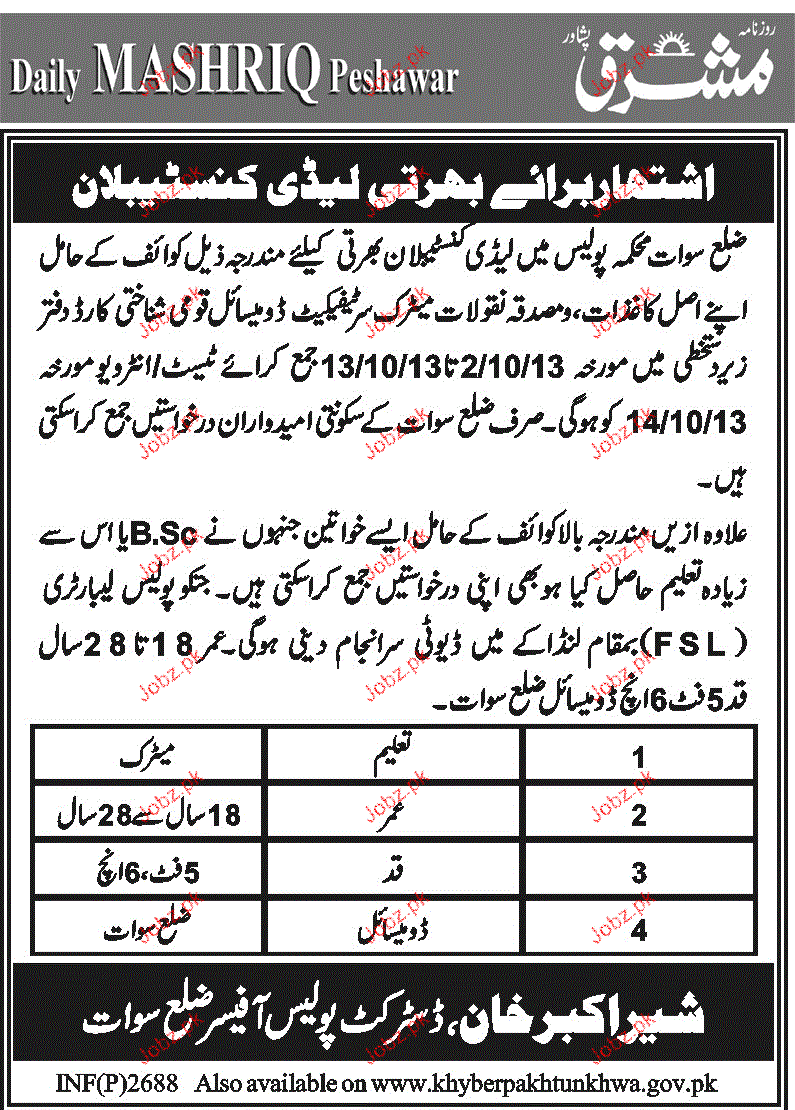 Apply as per details in job advertisement. Login to view further details of how to apply via https://www.jobz.pk online.
