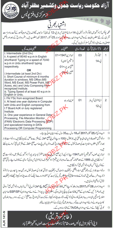 Latest Police Department Admin Clerical Posts Muzaffarabad 2025