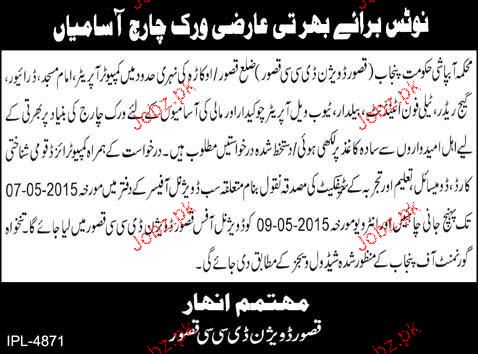 Recruitment Of Temporary Work ChargeMen In Kasur Division