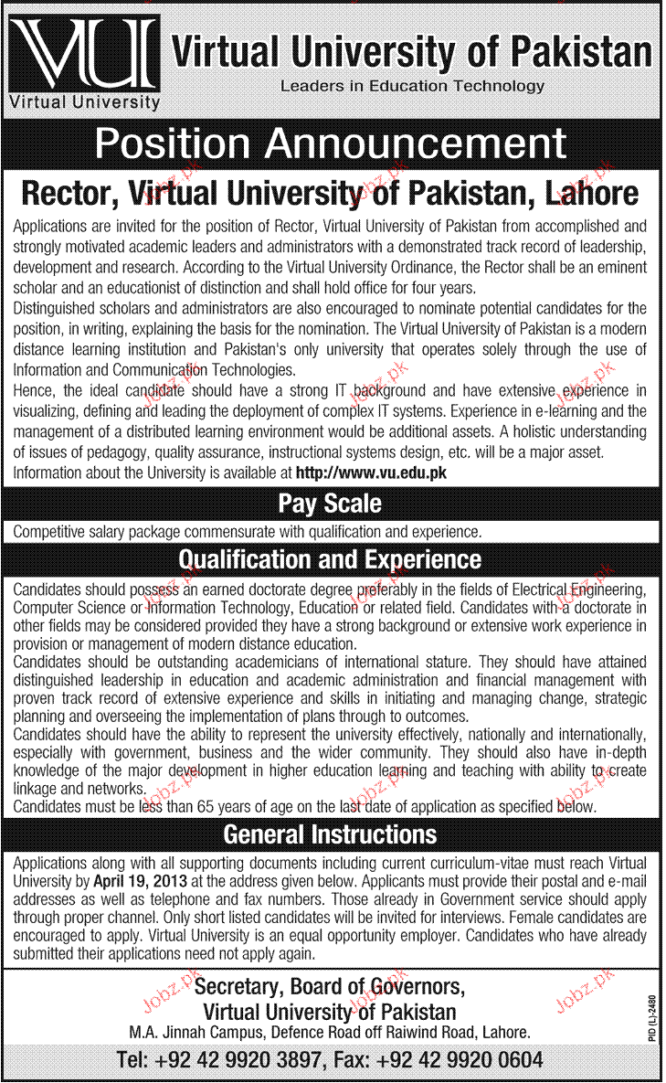Apply as per details in job advertisement. Login to view further details of how to apply via https://www.jobz.pk online.