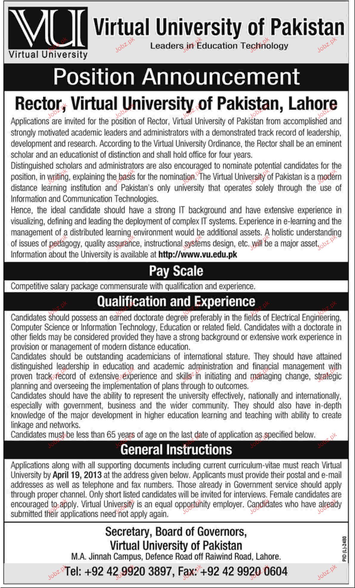 Apply as per details in job advertisement. Login to view further details of how to apply via https://www.jobz.pk online.