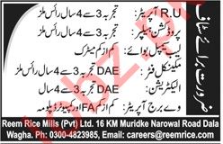 Vacancies in Reem Rice Mills Pvt Ltd Advertisement April 2019