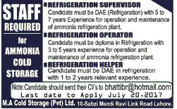 Refrigeration Operators And Refrigeration Helpers Wanted