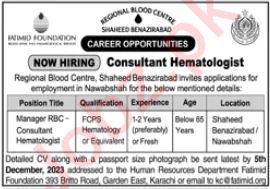 Regional Blood Center is looking for candidates for following posts as per job advertisement published in daily Jang Newspaper of November 27, 2023 for location Nawabshah, benazirabad Sindh Pakistan: