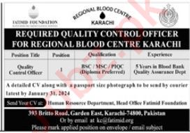 Regional Blood Center invites applications for job positions advertised in daily Jang dated 21 January 2024 for following vacancies in Karachi, karachi Sindh Pakistan.