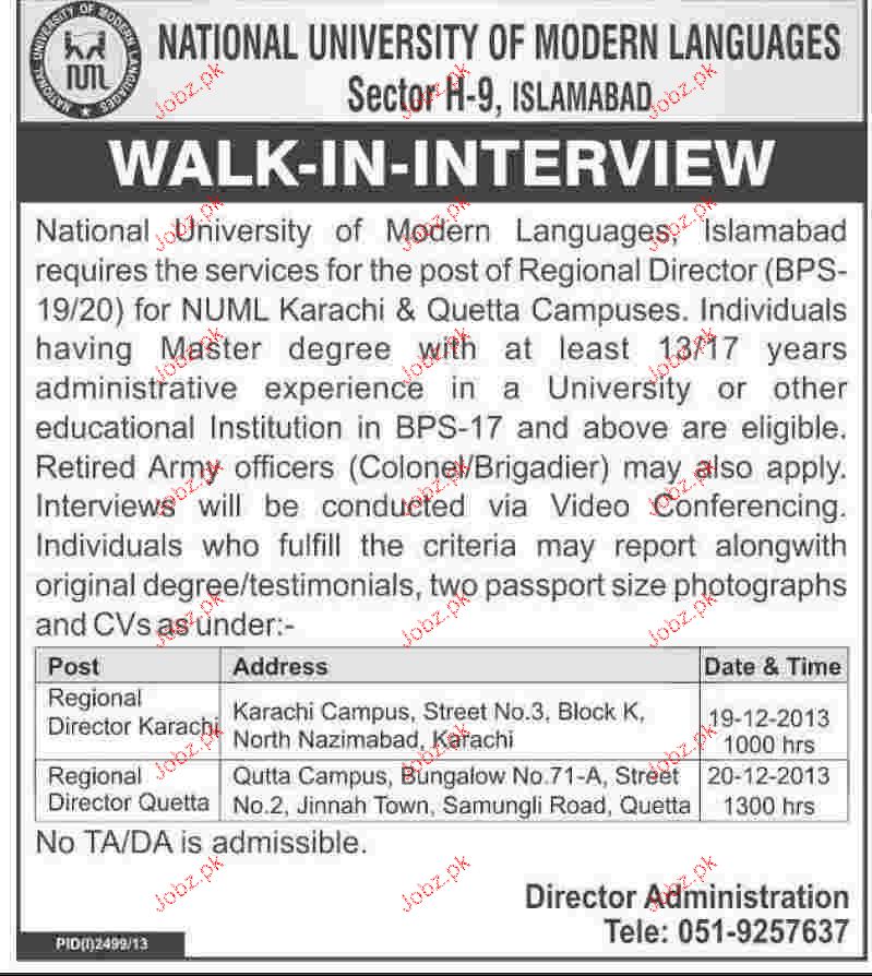 Apply as per details in job advertisement. Login to view further details of how to apply via https://www.jobz.pk online.