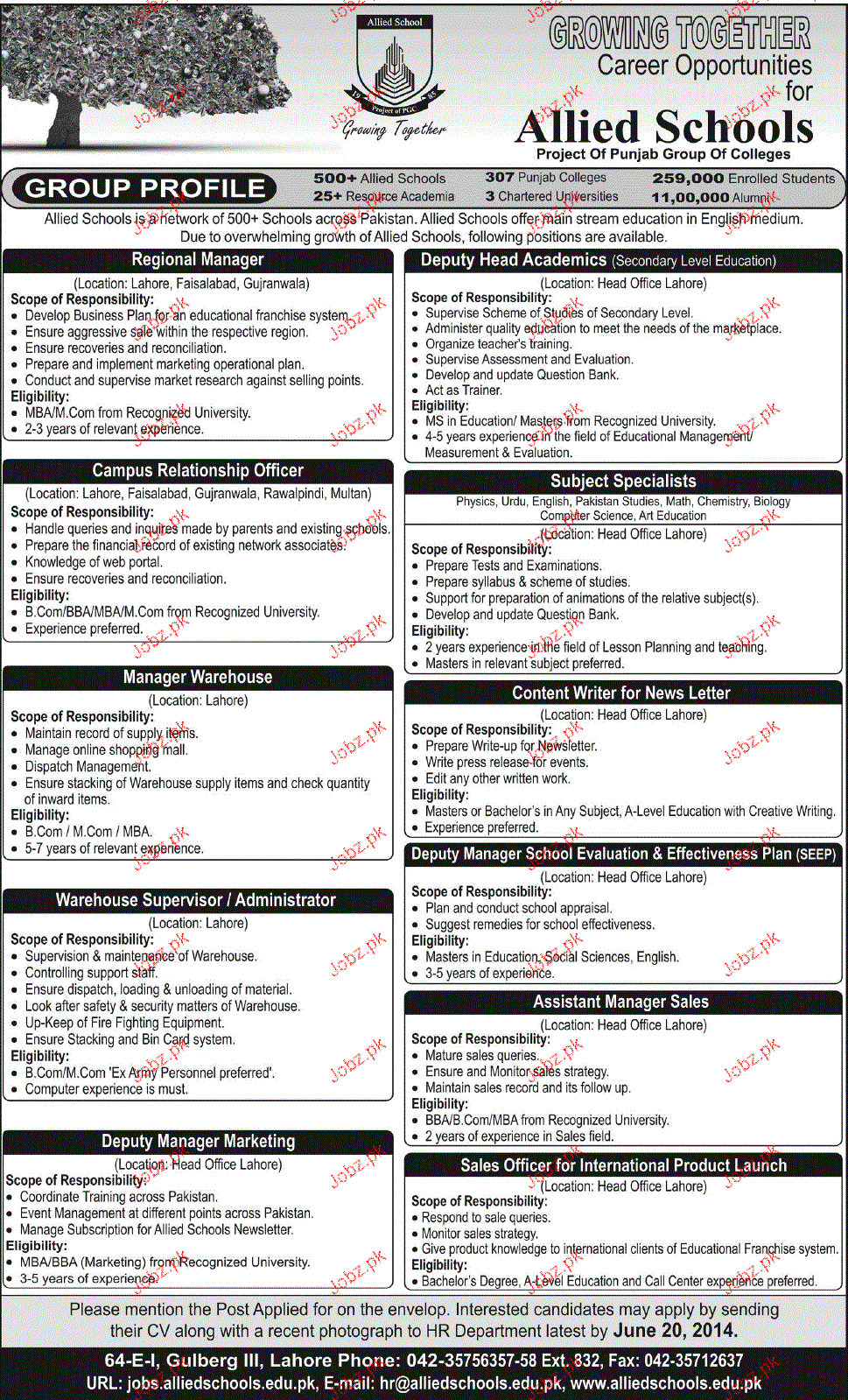 Apply as per details in job advertisement. Login to view further details of how to apply via https://www.jobz.pk online.