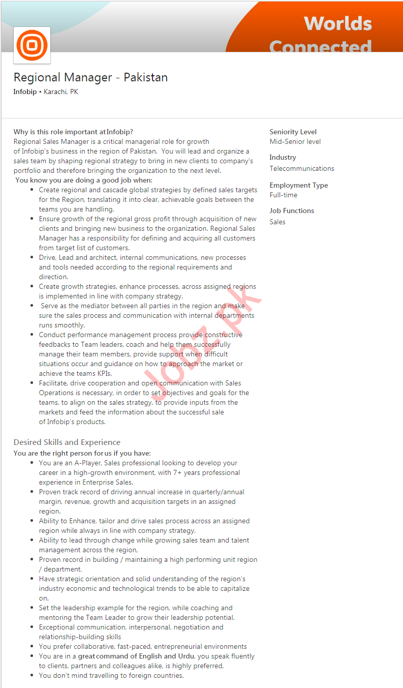 Latest Infobip Telecommunications Company Management Posts Karachi 2025