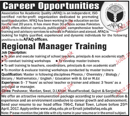 Apply as per details in job advertisement. Login to view further details of how to apply via https://www.jobz.pk online.