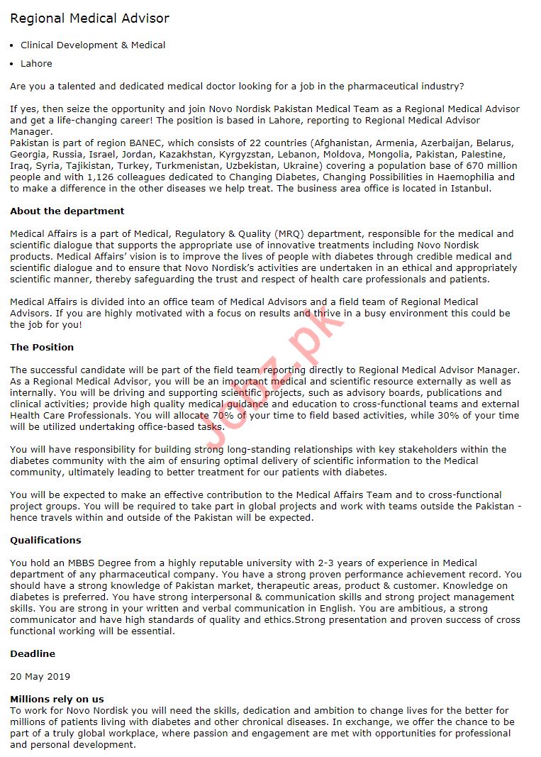 Latest Novo Nordisk Pharmaceutical Company Medical Posts Lahore 2025