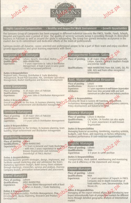Apply as per details in job advertisement. Login to view further details of how to apply via https://www.jobz.pk online.
