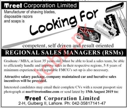 Latest Treet Corporation Limited Sales Posts Lahore 2025
