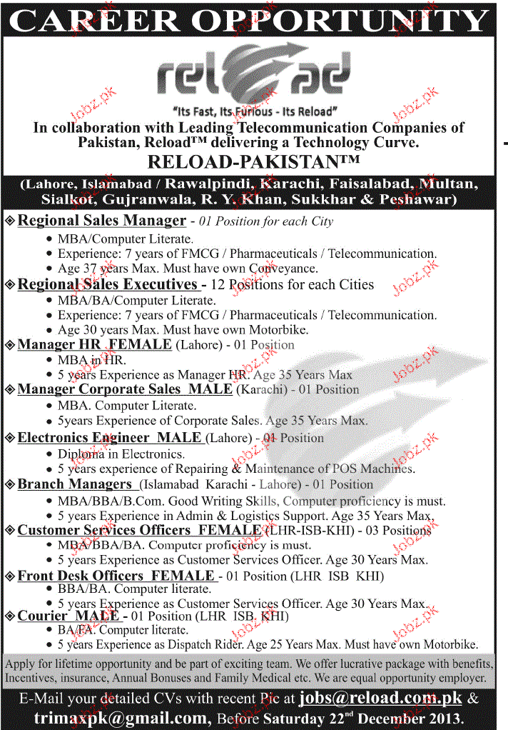 Apply as per details in job advertisement. Login to view further details of how to apply via https://www.jobz.pk online.