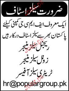 Regional Sales Manager, Zonal Sales Manager and Territory Sales Officers are required in Lahore.