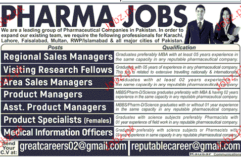 Regional Sales Managers, Visiting Research Fellow Wanted