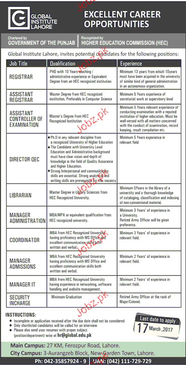 Apply as per details in job advertisement. Login to view further details of how to apply via https://www.jobz.pk online.