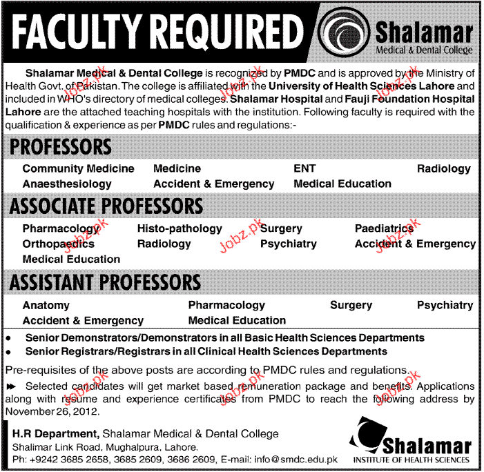 Apply as per details in job advertisement. Login to view further details of how to apply via https://www.jobz.pk online.