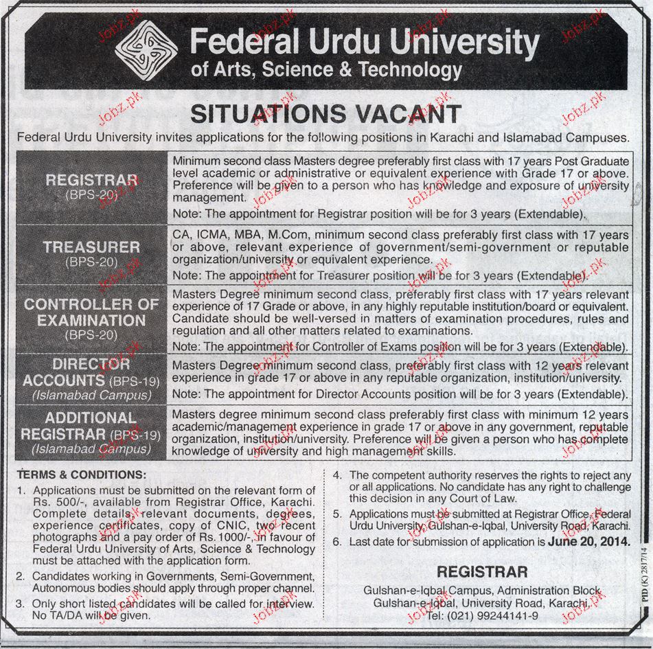 Latest Federal Urdu University of Arts Science And Technology Education Posts Karachi 2025
