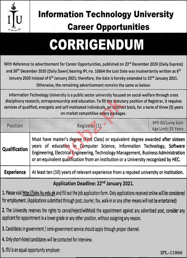 Vacancies in Information Technology University ITU Advertisement January 2021