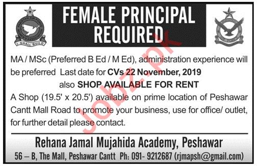 Rehana Jamal Mujahida Academy Job For Principal In Peshawar
