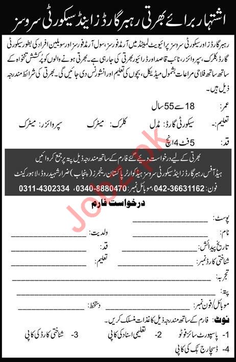 Vacancies in Rahbar Guards & Security Services Advertisement January 2020