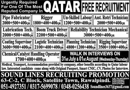 Sound Lines Recruiting Promotion invites applications for job positions advertised in daily Express dated 30 July 2024 for following vacancies in Doha, doha Qatar.