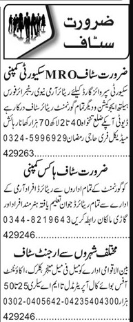 Private Company Lahore, lahore Punjab Pakistan invites applications from eligible candidates for the post of accountant, manager, army security guard, office boy, call operator and clerk as per advertisement of May 8, 2024 published in daily Roznama 92 News Newspaper. Educational qualifications required Matric, Middle and Intermediate etc.