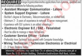 Phoenix Group jobs advertisement dated about 30 June 2024 in daily Jang Newspaper invites application for the vacant post of assistant manager communication, customer service officer, system support engineer, electronic engineer, technician and wiring technician in Lahore, lahore Punjab Pakistan. Educational qualifications required Intermediate, Bachelor, Master, Matric and MS etc.