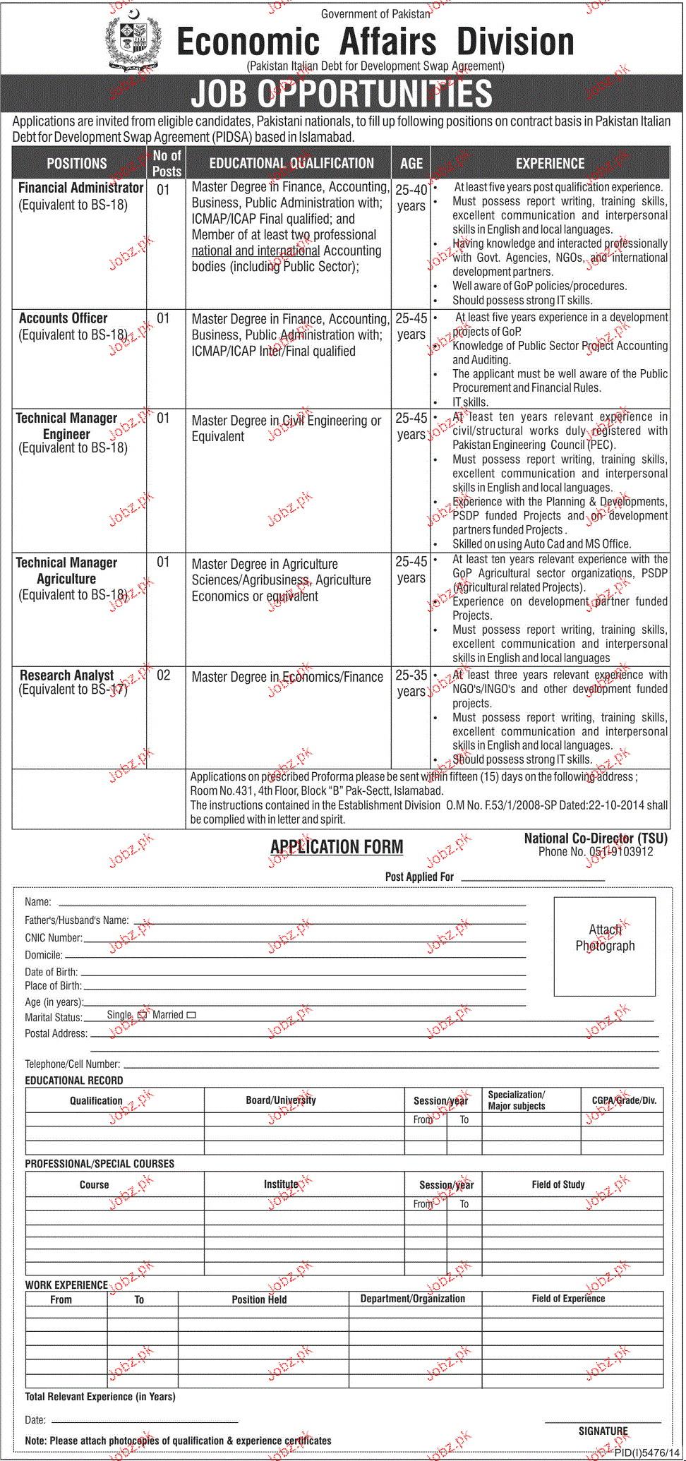 Apply as per details in job advertisement. Login to view further details of how to apply via https://www.jobz.pk online.