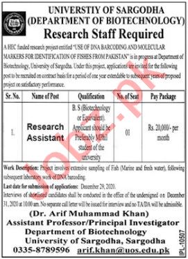 Vacancies in University of Sargodha UOS Advertisement December 2020