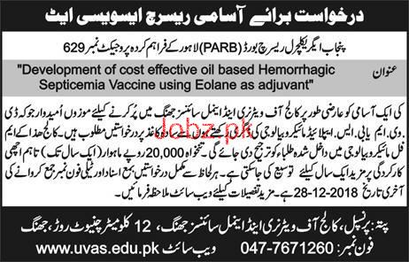 Vacancies in College of Veterinary and Animal Sciences Advertisement December 2018