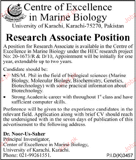 Apply as per details in job advertisement. Login to view further details of how to apply via https://www.jobz.pk online.
