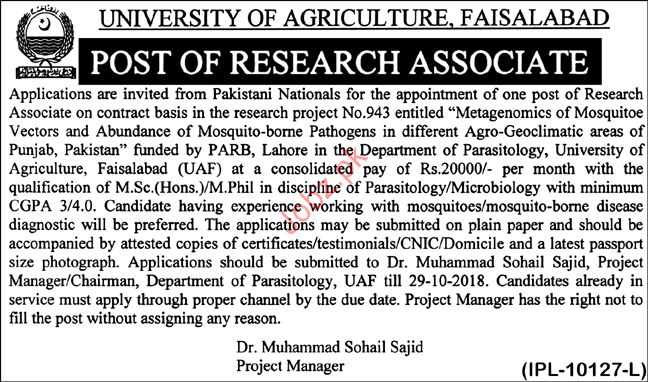 Vacancies in University of Agriculture UAF Advertisement October 2018