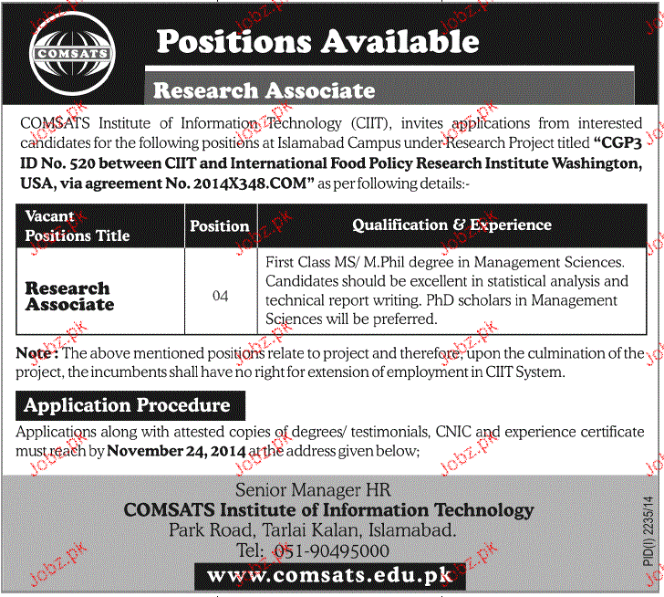 Apply as per details in job advertisement. Login to view further details of how to apply via https://www.jobz.pk online.