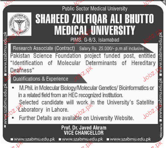 Research Associates Job In Shaheed Zulifqar Ali Bhutto