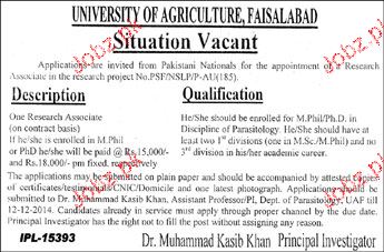 Research Associates Job in University of Agriculture