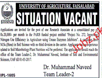 Research Associates Job in University of Agriculture