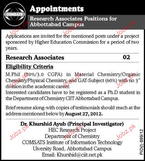 Apply as per details in job advertisement. Login to view further details of how to apply via https://www.jobz.pk online.