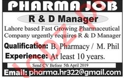 Vacancies in Pharmaceutical Company Advertisement March 2019