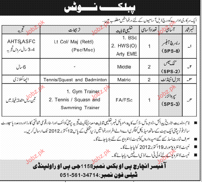 Apply as per details in job advertisement. Login to view further details of how to apply via https://www.jobz.pk online.
